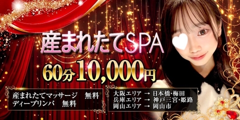 当店は兵庫・岡山・大阪にございます産まれたて姿マッサージ専門店になります♪♪ 追加料金一切なしでのご案内になります♪♪ ※産まれたて姿マッサージ・ディープリンパ無料です。 是非一度お試し下さいませ♪♪ ★☆産まれたて姿マッサージ待機フリーイベント★☆ 60分コース12000円→新規様10000円・会員様11000円 80分コース15000円→新規様13000円・会員様14000円 ※待機セラピスト2名以上から適用可能です。 ※待機状況確認後のフリーでのご案内はございません。 ※お電話頂いてから1時間以内のご案内限定になります。 オプション 産まれたて姿マッサージ無料(コース料金に含まれております) ディープリンパ無料(コース料金に含まれております) ★☆産まれたて姿マッサージ月間イベント★☆ ★☆2000円OFF★☆ 指名料込み!!(本指名・特別指名料別途) 60分コース14000円→12000円(2000円OFF) 80分コース17000円→15000円(2000円OFF) 100分コース21000円→19000円(2000円OFF) 120分コース25000円→23000円(2000円OFF) 150分コース31000円→29000円(2000円OFF) ※完全指名制になりますのでフリーのご案内はございません。(指名料l込み) ※本指名の場合+2000円になります。 ※特別指名セラピストは別途特別指名料になります。 オプション 産まれたて姿マッサージ 無料 ディープリンパ 無料 入会金無料 指名料2000円 特別指名料1000円~ 延長30分8000円 ホテル代金2500円~