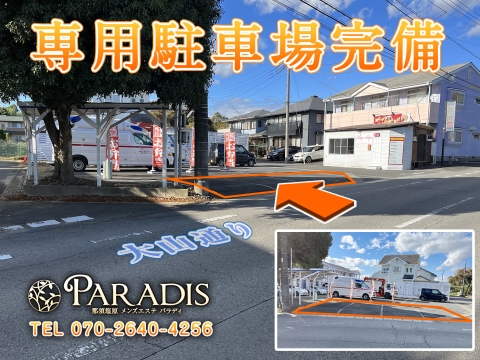 ※駐車場完備の為、ご安心して施術サービスをお受けできます。